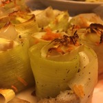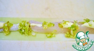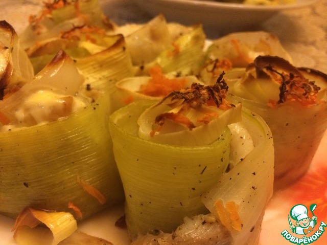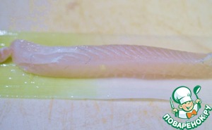 Рецепт «Запеченные рулетики из рыбы с луком-пореем»: