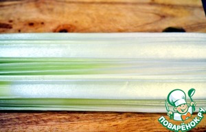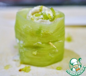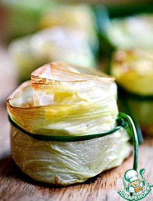 Затем зубочистки вытащить и каждый рулет связать пером шнитт-лука.
