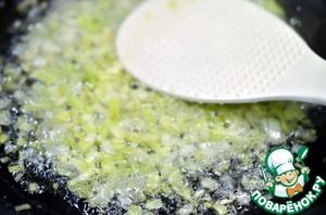 Лук и чеснок порезать и обжарить с добавлением небольшого количества масла.