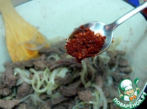 • Добавьте аджику, соль (не забудьте, что нас еще есть соленые огурцы), перец, травы - по вкусу