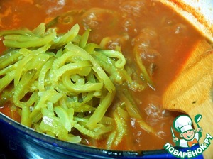 • Залейте мясо бульоном (мясной), добавьте огурцы