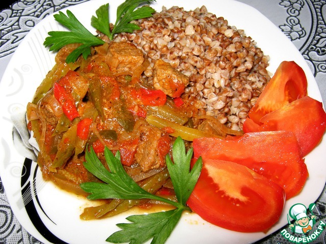 Замечательное домашнее блюдо! Соскучилась за гречкой и солёными огурчиками)). Мясо нежное, мягкое, с насыщенным ароматным соусом! Я готовила на плите, тушила недолго. Большое спасибо за рецепт!