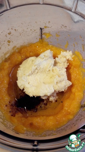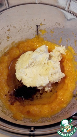 К тыквенному пюре (можно воспользоваться готовым или самим запечь тыкву в течение 30-40 минут и измельчить мякоть блендером) добавить корицу, растительное масло и треть теста. Хорошенько перемешать.