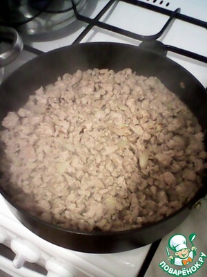 Добавляем фарш, специи любимые и соль. Обжариваем. Я люблю до небольшой корочки.