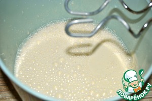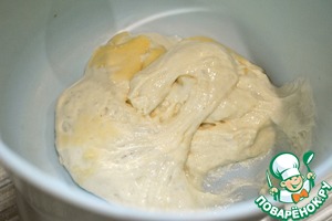• 4) Добавляем растопленное масло, соду и муку - перемешиваем.