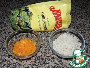 Апельсин очистить от кожуры и пленок, порезать небольшими кусочками. Сок от разделки апельсина и из жмыха добавить в рис, перемешать.