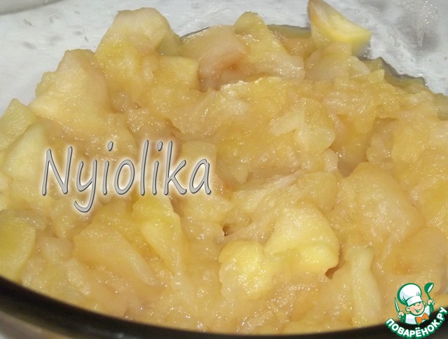 Яблоки очистить, нарезать крупными кубиками, в стеклянной емкости довести до готовности в микроволновке (от 5 до 10 минут) в зависимости от сорта яблок. Охладить.