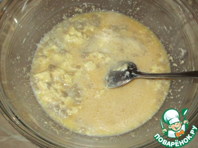 Вводим в смесь взбитые яйца, перемешиваем
