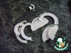 Лук нарезать полукольцами, толщиной около 5 мм.