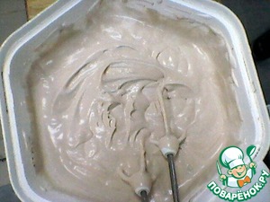 • Взбить охлажденные сливки в крепкую пену, добавить шоколадную массу.