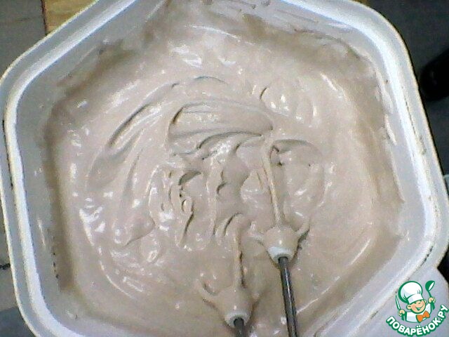 Взбить охлажденные сливки в крепкую пену, добавить шоколадную массу.