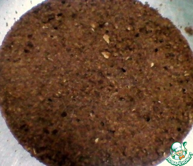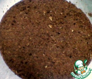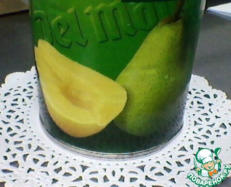 Разрезать охлажденный бисквит на две лепешки. Промочить сиропом от груш, добавив Амаретто.