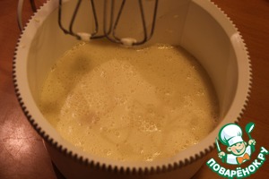 Добавить яйца, 100 мл молока, растопленное сливочное масло и хорошо перемешать.