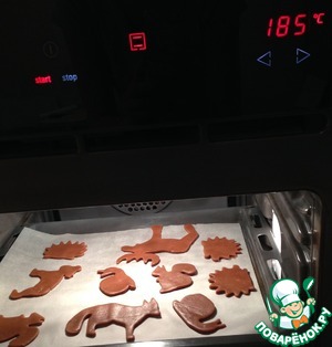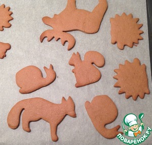 Разогрейте духовку до 185 градусов. Застелите противень пекарской бумагой. Сделайте из теста фигурки. Если формочек нет, то можно просто выдавить кружки стаканом.