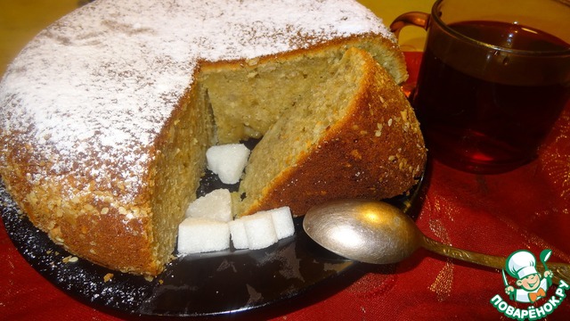Рецепт этот я нашла у Ники Белоцерковской и он стал одним из любимых пирогов у нас дома. Продукты все доступные, и готовится он очень просто. Почти ни какой грязной посуды и можно с легкостью обойтись без шумных миксеров. А, выпекая его в мультиварке, можно быть уверенной, что пирог не сгорит, так как умная машинка вовремя отключится.