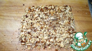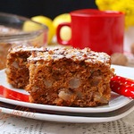 Тесто выложить в смазанную маслом форму, сверху посыпать второй половиной орехов. Форма у меня 17х23 см. Выпекать при температуре 200С 45 минут. Готовность проверить деревянной шпажкой.
