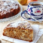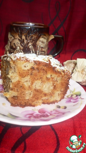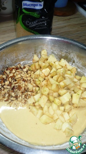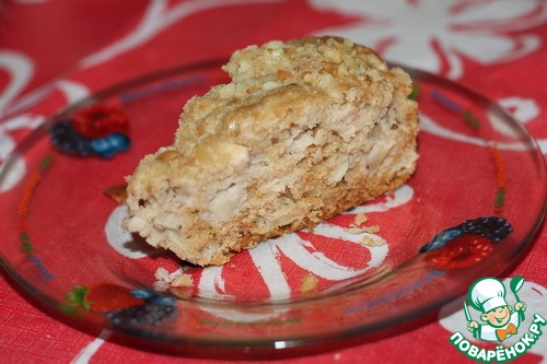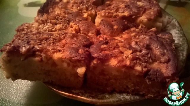 [+5]Готовила в мал. кексовой форме. Пирог лучше вначале накрыть или орехами позже посыпать. Яблок ушло меньше