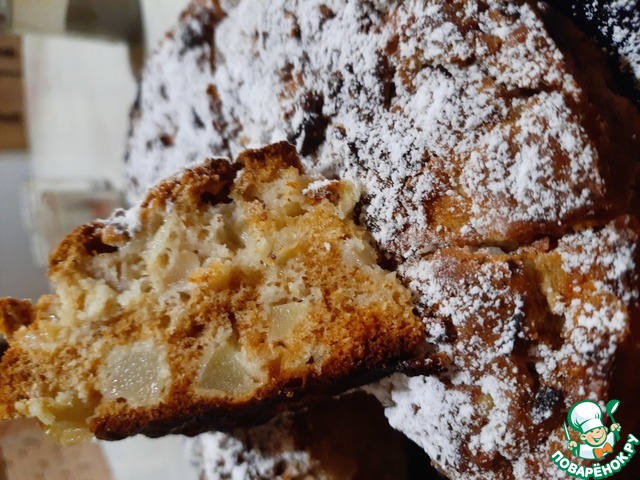 Дать остыть пирогу в форме, затем вынуть, присыпать сахарной пудрой и наслаждаться с молоком или чаем!