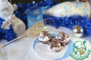 Затем растопим шоколад на водяной бане с добавлением растительного масла (или в микроволновке). И нарисуем шоколадной глазурью красивые узоры на белковых шапочках. У меня-готовая двухцветная глазурь.