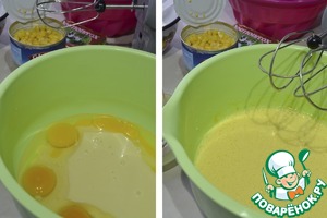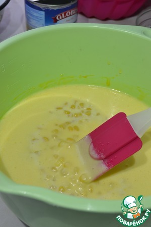 • Добавить кукурузу (жидкость предварительно слить) и перемешать наше тесто.
