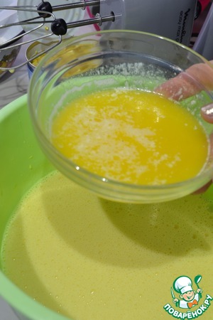 • Добавить растопленный и остуженный маргарин. Хорошо перемешать.