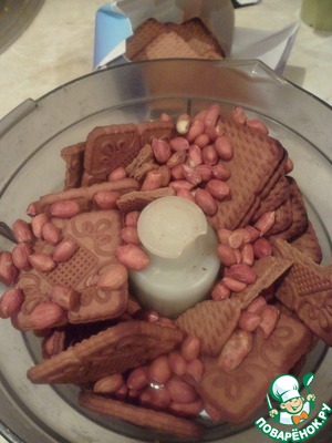 Шоколадное печенье с любыми любимыми орехами, у меня был арахис, измельчить в крошку в комбайне.