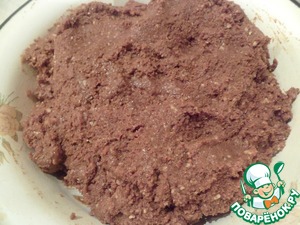 Добавить в заправку измельченные в крошку печенье с орехами и тщательно вымесить.