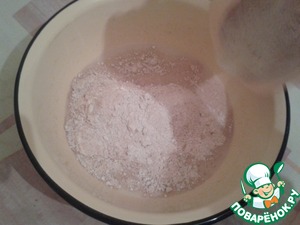 Полученную сухую смесь всыпаем в закваску с водой. -