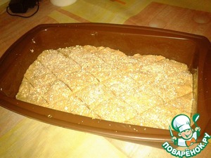 Сверху посыпаем отрубями (примерно 0,5 ст. ложки), семенами кунжута. Можно немного присыпать мукой.