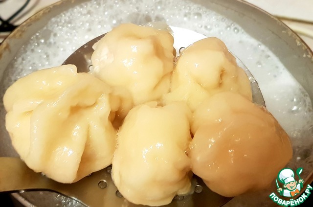 Просеять муку на плоское блюдо, собрать холмиком, в центре сделать углубление, влить теплую воду, соль, яйцо и замесить тесто, оставить на 20 мин. , затем разделить на куски, очень тонко раскатать, в центр положить мясную начинку, собрать в узелки, плотно скрепить. Варить в подсоленной кипящей воде.