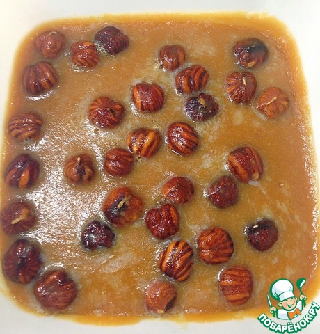 Добавить в смесь сливочное масло и орехи. Тщательно перемешать.