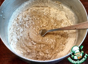 В отдельной посуде смешать два вида муки, разрыхлитель и соль.