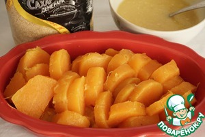 Сверху заливаем апельсиновым соусом и запекаем в духовке примерно 45-50 минут, до полной готовности батата. -