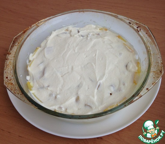 Закрываем все второй половиной массы. Отправляем выпекаться в духовку на 1 час при 180 градусах.