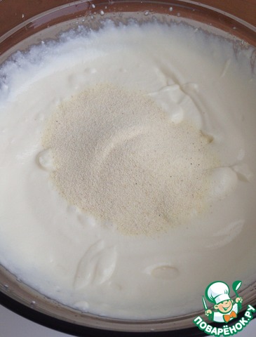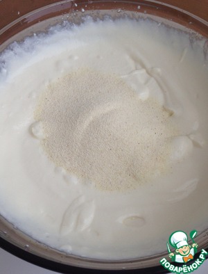 Добавляем манку, хорошенько перемешиваем и оставляем на 10-15 минут, до набухания манки.