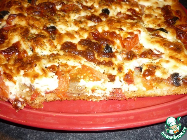 Достаем пиццу и еще раз сбрызнем ее оливковым маслом, чтобы взорвать все вкусы!