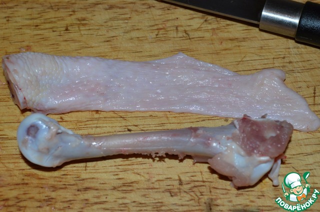 Осторожно вынуть кость, чтобы кожа осталась как чулок.