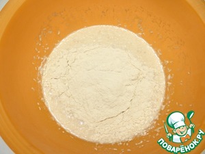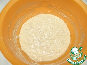 Муку просеять с разрыхлителем, добавить к остальным ингредиентам.