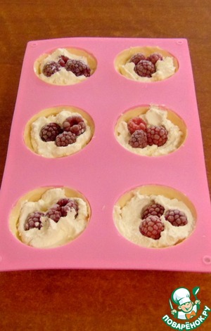Укладываем крем в застывшие полусферы, сверху ягоды (по вашему вкусу), у меня малина замороженная)