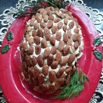 Забыла написать , что миндаль муж купил уже обжаренный и соленый, я заметила только когда достала коробочку с ним для украшения.