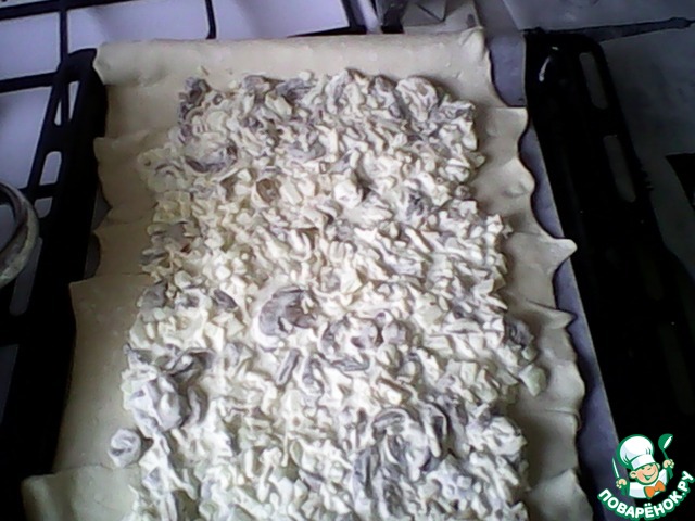 Пирог с грибами, сметаной и луком