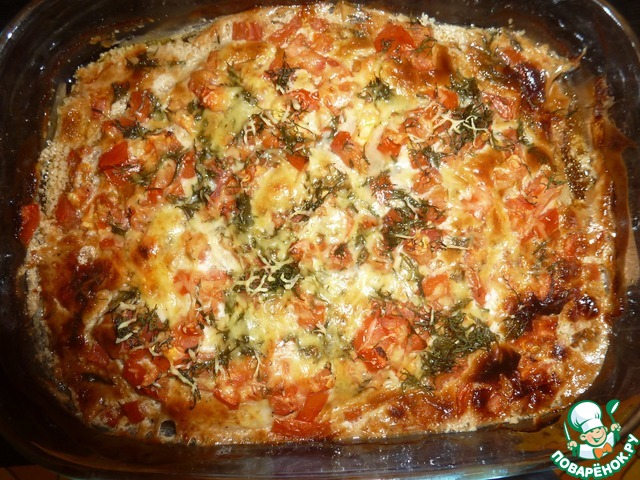 Оставшиеся помидоры мелко нарезаем, выкладываем по-верх соуса.