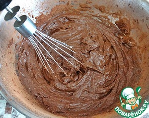 Выложите масло из холодильника, чтобы оно стало мягким. Взбейте его с 125г. коричневого сахара ТМ "Мистраль", с 2 яйцами, какао-порошком, просеянной мукой и разрыхлителем.