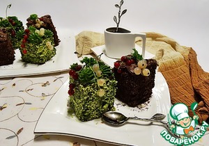 Зелёный шоколад натереть так же на мелкой тёрке и обсыпать "зелёные" пирожные.