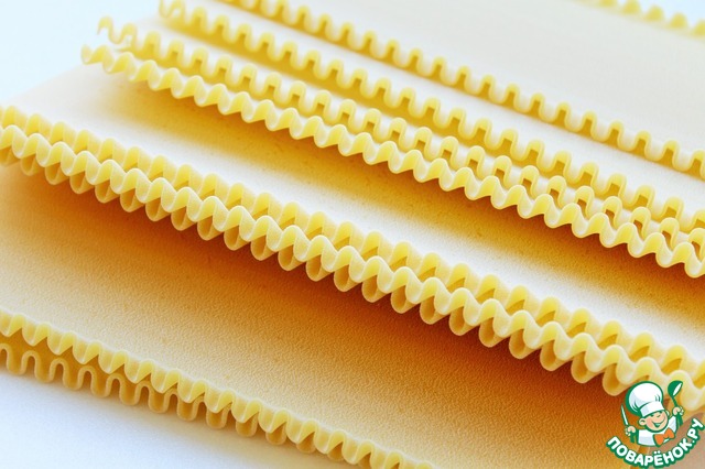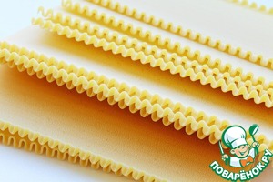 Пластины для лазаньи отварить в кипящей воде с добавлением оливкового масла до полуготовности.