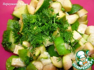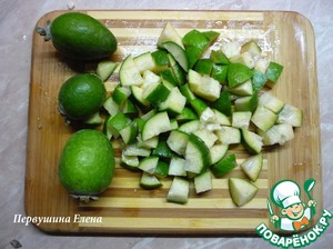 • Фейхоа ошпарить кипятком и нарезать на более мелкие кусочки, нежели курицу или огурец.