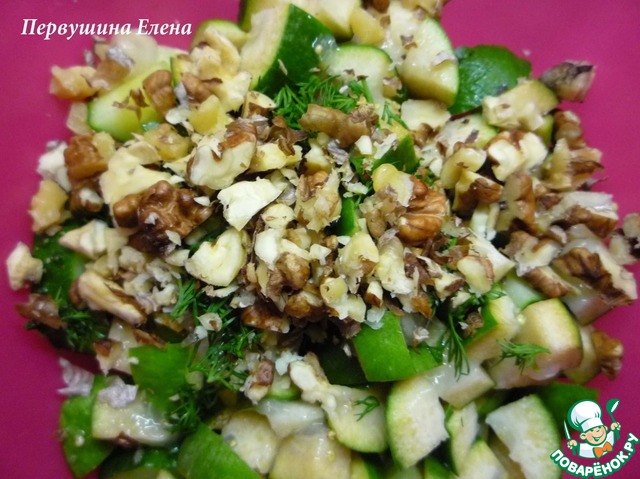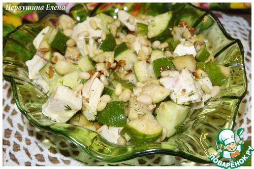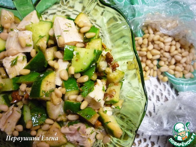 • Украсить кедровыми орехами. Перед употреблением салат перемешать.