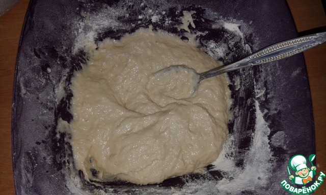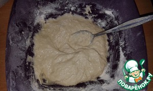 И снова столовую ложку теста. Выпекать около 30 минут при 175 градусах. Верх посыпать сахарной пудрой