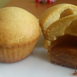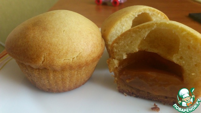 Формочки смазать подсолнечным маслом. Положить столовую ложку теста, на нее чайную ложку вареной сгущенки