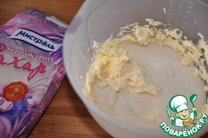 Добавляем сахар к маслу, и всё хорошо взбиваем.